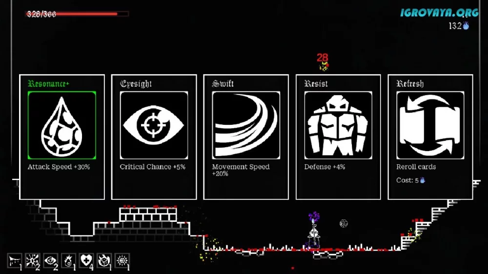 После уничтожения всех врагов вам предоставляется возможность выбрать улучшения для своего персонажа. Добавляйте здоровье, защиту, урон оружию, используйте взрывоопасные заклинания и создавайте собственную колоду для победы в схватке с космическими угрозами.