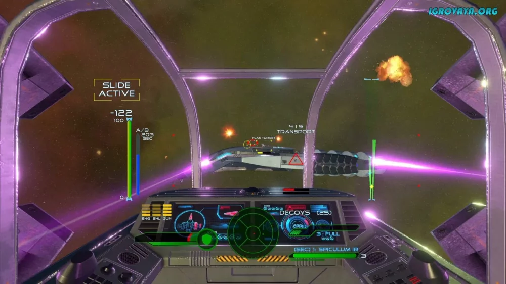 Погрузитесь в захватывающее космическое приключение с игрой в жанре научной фантастики от первого лица, где вам предстоит пилотировать собственный истребитель и сражаться с врагами в бескрайнем пространстве.