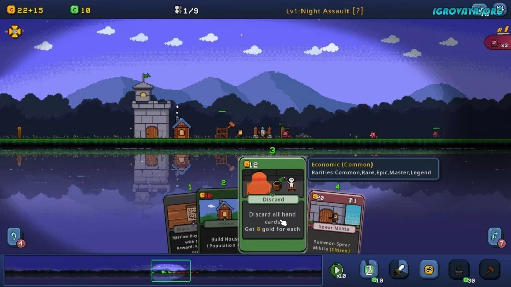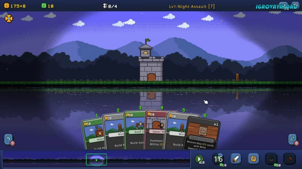 - Карточная система с уникальными картами, которые разблокируются по ходу игры и добавляют глубину стратегии.