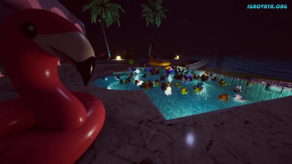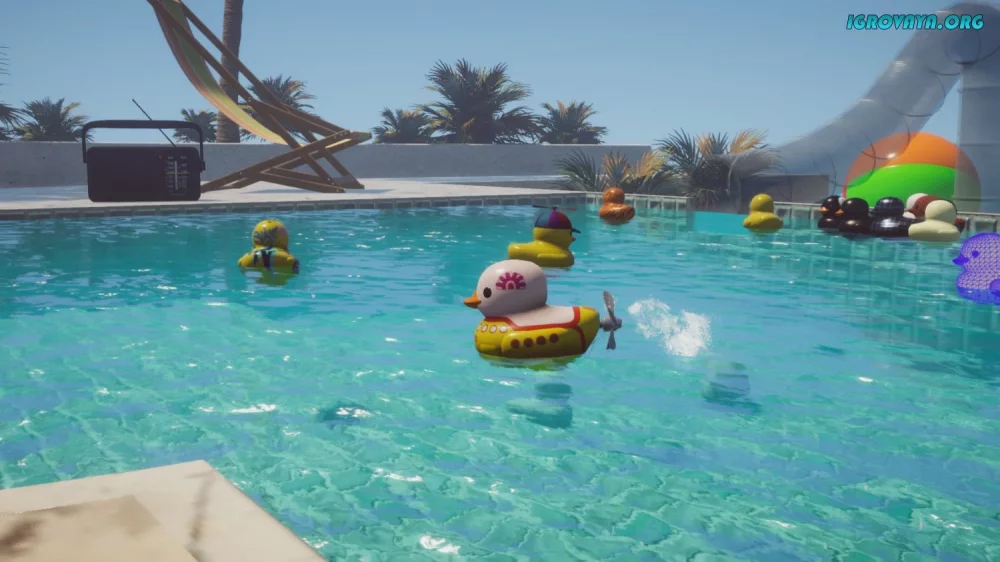Placid Plastic Duck Simulator — это уникальный симулятор, который проникает в ваше сознание и не отпускает. Здесь нет сложного сюжета, грандиозных приключений и захватывающих сражений. Здесь только спокойствие и умиротворение, которые находятся в плавании по бассейну, окруженному резиновыми уточками.