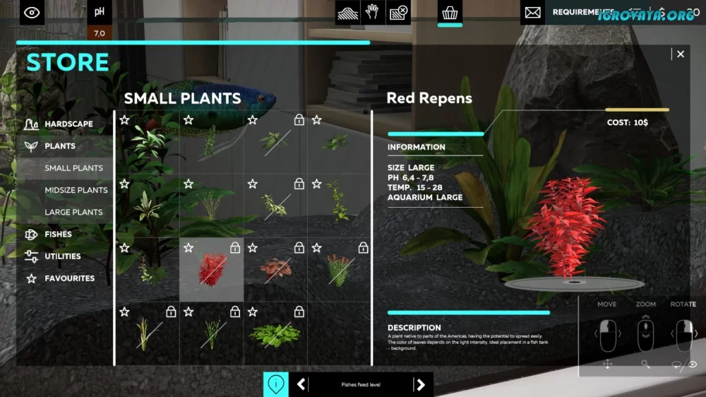- Огромное количество контента для творчества - разнообразные виды рыб, оборудование для обслуживания аквариумов, украшения и аксессуары.