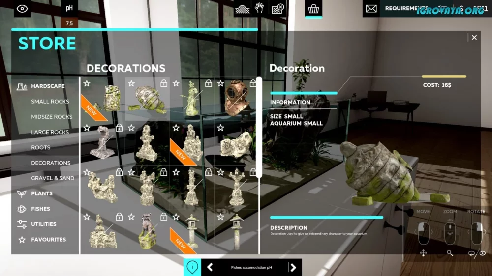 Игра Aquarium Designer предлагает вам возможность выбора: следовать требованиям заказчиков и зарабатывать репутацию профессионала или же наслаждаться свободой самовыражения в творческом процессе. Решать вам.