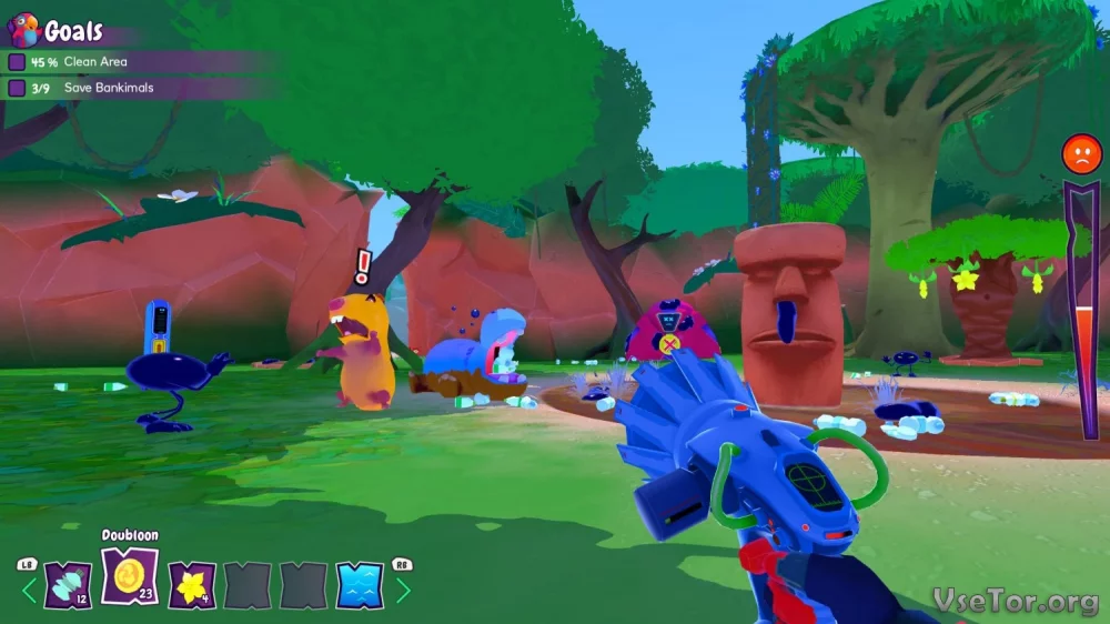 События разворачиваются на архипелаге красивых островов, где внезапно появилось много мусора и странных существ, готовых нарушить спокойствие. От вас зависит спасение острова и его обитателей. Возьмите в руки мусоробластер и отправляйтесь в захватывающее приключение.