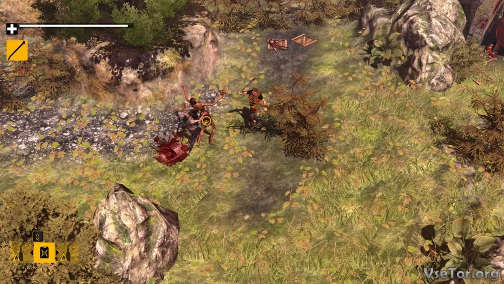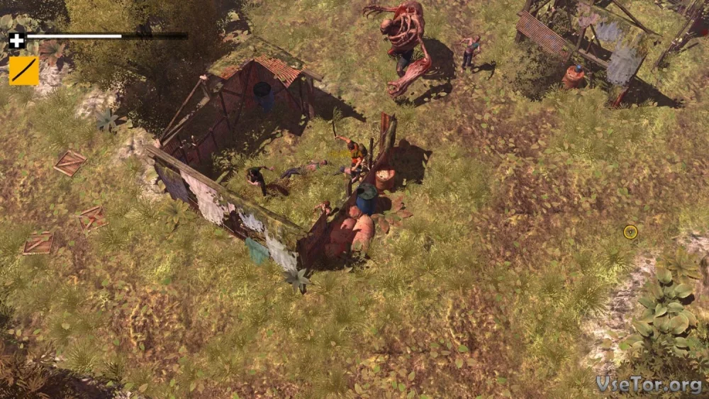 - Игровой процесс с видом сверху, предоставляющий возможность контролировать героев.