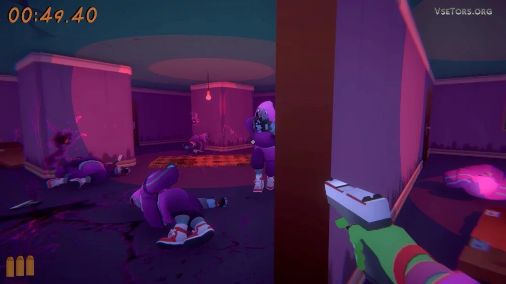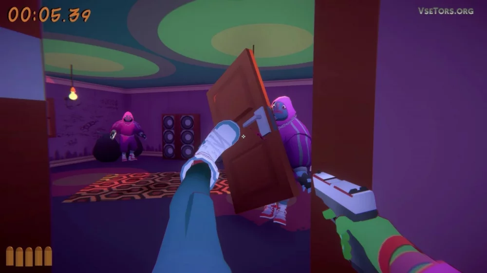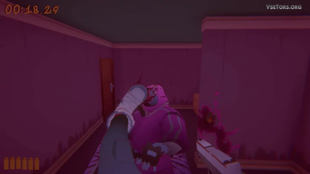 Игровой процесс основан на адреналиновом бегстве и уничтожении врагов. Вы будете исследовать комнаты, бить двери, стрелять из оружия врагов и использовать физику игры для создания крутых комбо-ударов. Каждый уровень будет полон опасностей и неожиданных встреч, так что будьте готовы ко всему.