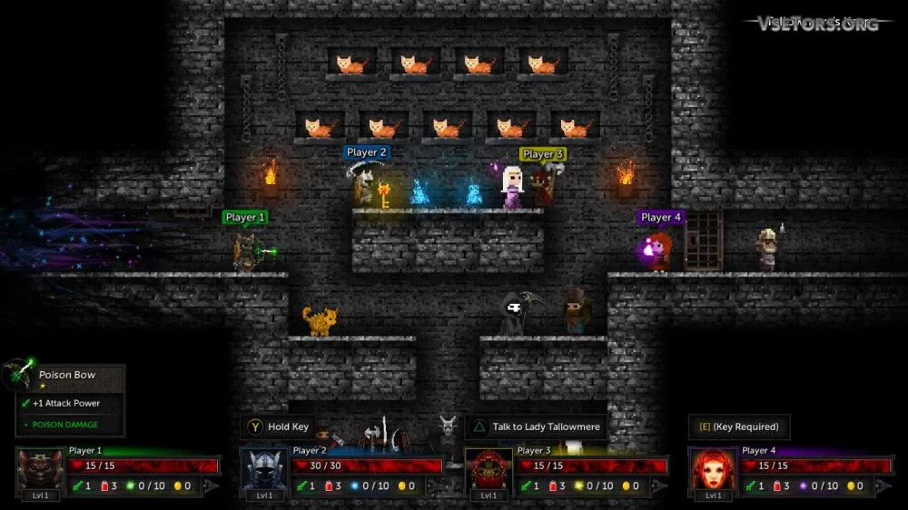 И, конечно же, не стоит забывать о разнообразной системе прокачки в Tallowmere 2: Curse of the Kittens. Вы можете разблокировать различные способности и навыки, а также находить разнообразный лут, включающий зелья, оружие и многое другое. Бросьте вызов подземелью и покажите всю свою силу и мастерство!