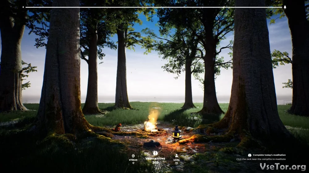 Погрузитесь в атмосферу гармонии и спокойствия, находясь рядом с костром в лесной глуши. Здесь вы услышите от лиса историю этого удивительного места, исполненную тайны и загадок. Однако главное начинается, когда вы приступаете к медитации, погружаясь в свои мысли и решения, которые формируют окружающий вас мир.