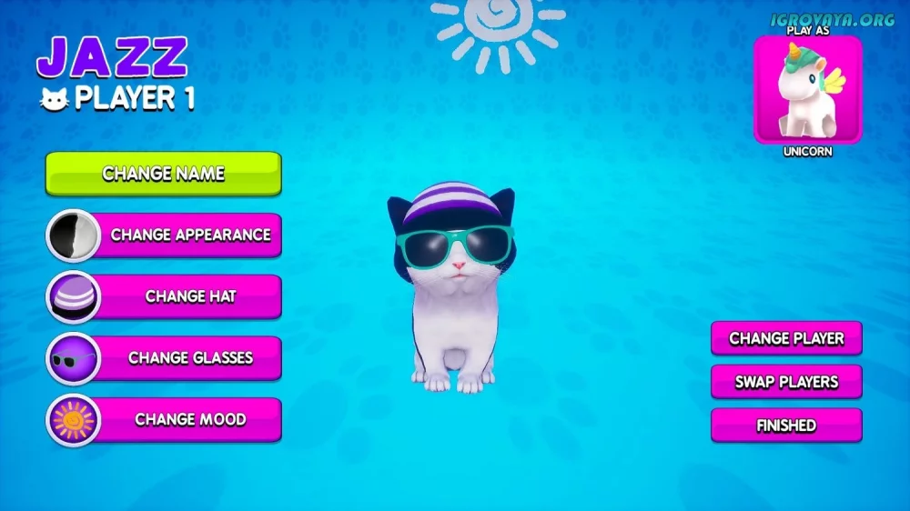 Вам придется начинать с выбора персонажа, как только вы решите скачать игру. Выбирайте между Гилбертом, его друзьями или создайте уникального котенка с помощью редактора. Выберите окрас, добавьте аксессуары - шляпки, кепки, панамки, очки, и отправляйтесь в путь.