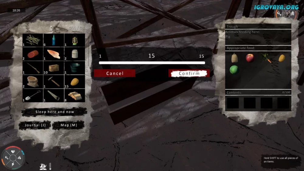 - Исследование окрестностей в поисках ресурсов и материалов для выживания.