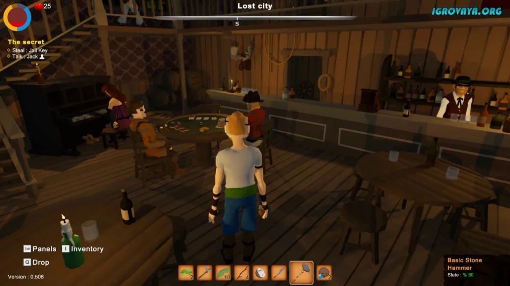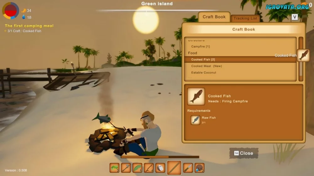 - Начните с нуля, обустраиваясь на острове и добывая первые материалы.