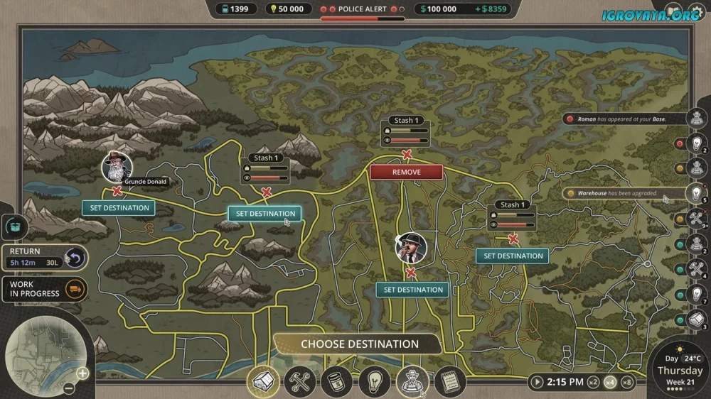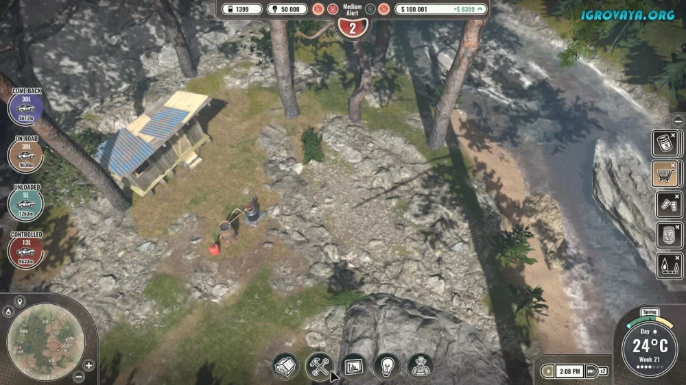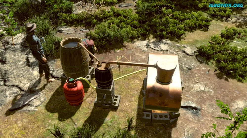 Изначально у вас будет лишь скромный двор, но ваши возможности будут расширяться с каждым заработанным долларом. Постройте убежище, наладьте производство и станьте настоящим магнатом самогонного бизнеса. Но будьте бдительны, ведь вас поджидают конкуренты, которые не пощадят вас. Сразитесь с ними, отберите клиентов и станьте единственным королем самогонного производства в округе.
