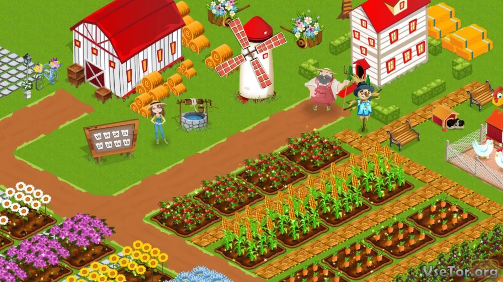 Игровой процесс разделен на несколько частей. Основной упор делается на выполнение разнообразных задач, которые становятся доступны каждый новый игровой день. Вам придется заниматься посевом, поливкой и уборкой урожая, разведением животных, и многим другим. Каждое ваше действие повлияет на развитие фермы и откроет новые возможности для вас.