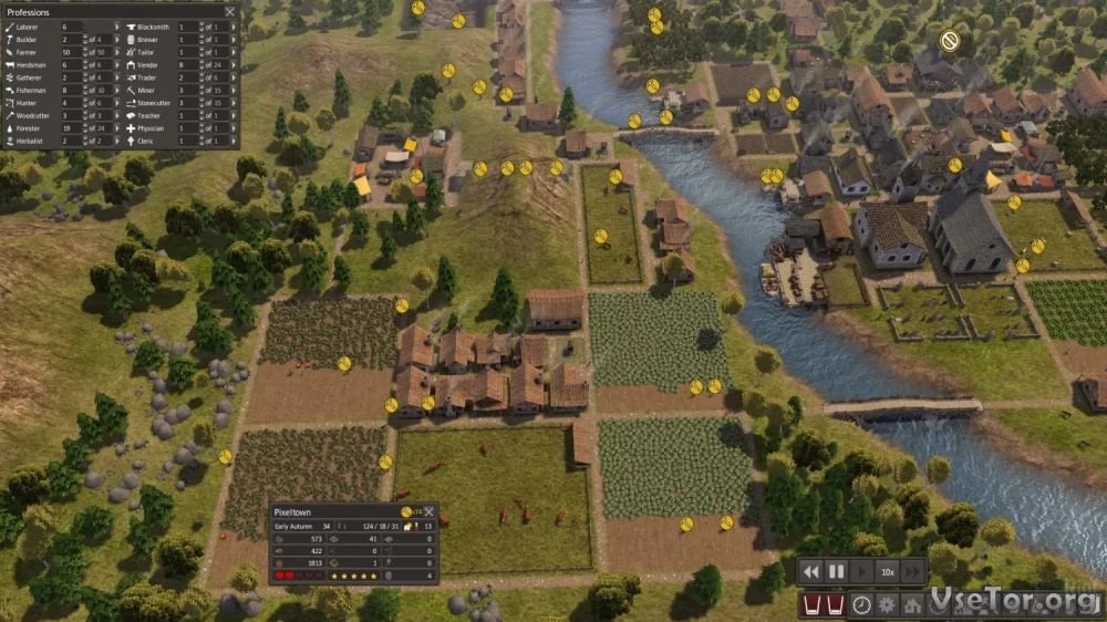 - Следите за состоянием поселенцев, развивайте их и привлекайте новых жителей.