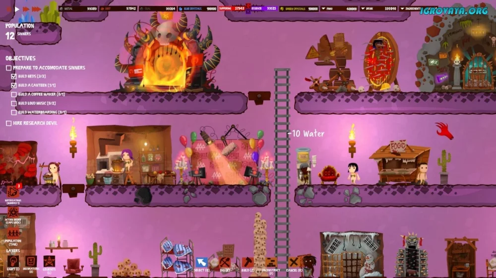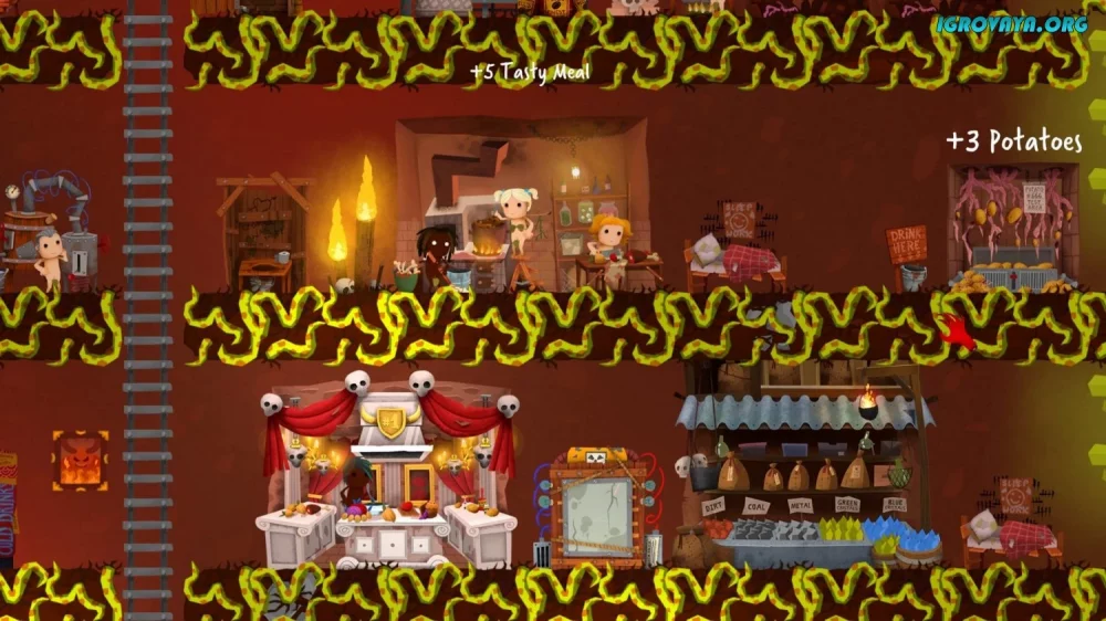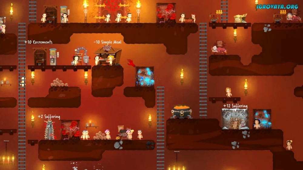 Кроме того, вам предстоит управлять грешниками, распределять задания, наказывать их, повышать авторитет через адские часовни и многое другое. Ваш успех зависит от умения контролировать всех обитателей Ада.