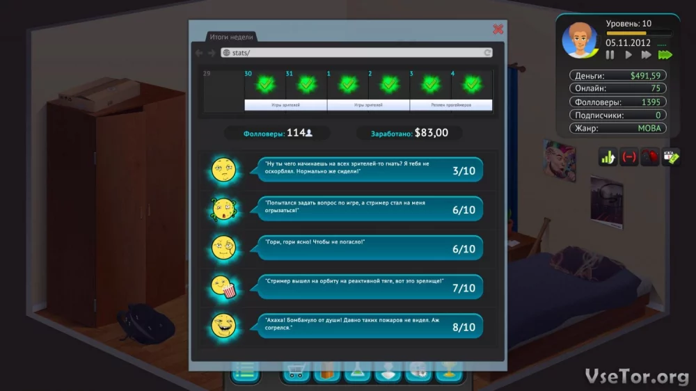 Вам предстоит не только строить карьеру стримера, но и решать повседневные проблемы. Общение с родителями, друзьями, планирование времени и борьба с троллями - все это ждет вас в мире Streamer's Life. Чем больше вы развиваетесь, тем больше вызовов и задач вам предстоит преодолеть.