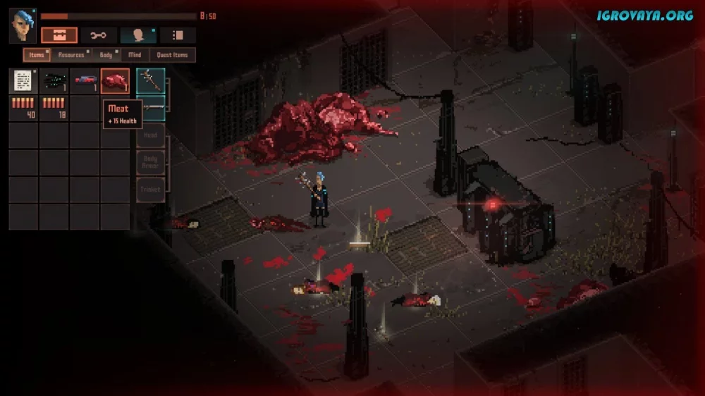 Вас ждут разнообразное оружие и продуманная боевая система. Вы сможете воевать как в ближнем, так и в дальнем бою, использовать холодное оружие, стрелковое вооружение, специальные атаки и многое другое. Death Trash также предлагает множество рандомных событий, массу заданий и уникальных персонажей с интересными историями.