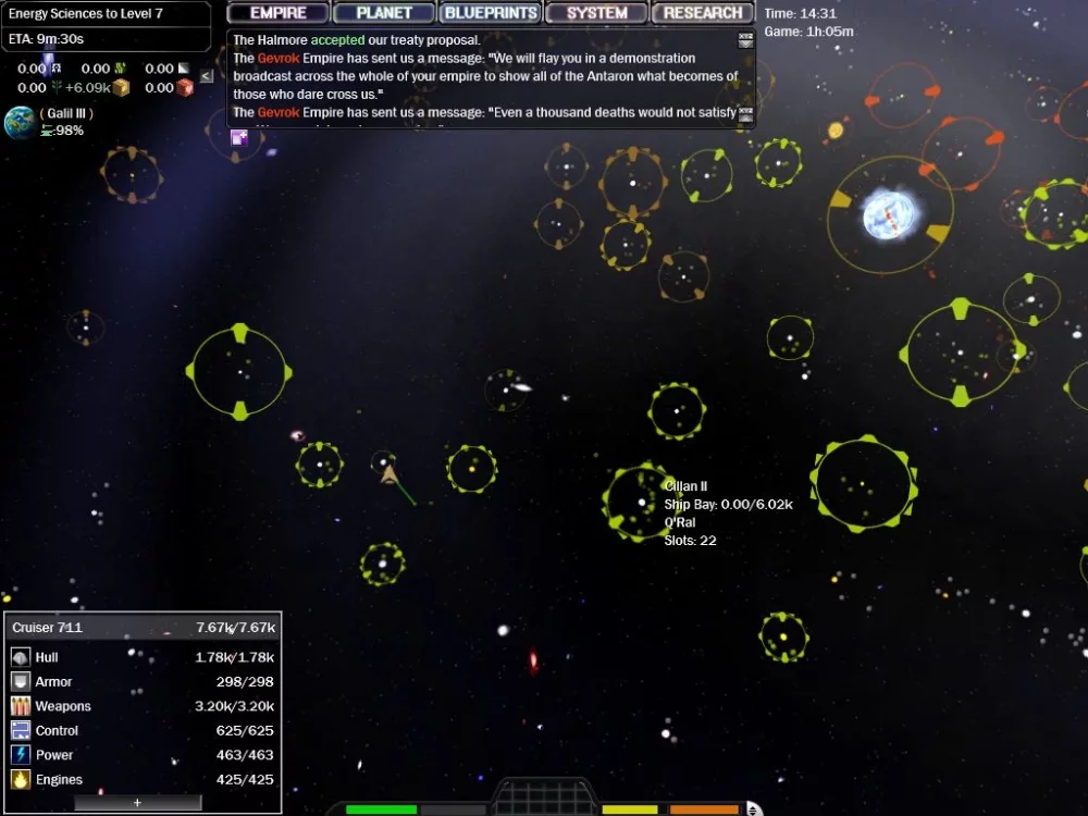 Погрузитесь в захватывающий мир научной фантастики с игрой, где вам предстоит стать лидером межзвездной империи и защитить свой народ от угрозы вымирания. Развивайте свой флот, исследуйте новые технологии и добывайте ресурсы, чтобы расширить свое влияние на процедурно генерируемой Галактике.