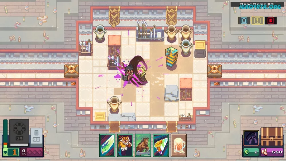 Исследование подземелий проходит в обычном режиме с видом сверху. Исследуйте каждый уровень, собирайте добычу, продавайте её и прокачивайтесь. Чем глубже вы погружаетесь, тем больше секретов вы обнаруживаете. Собирайте карты, которые помогут вам в бою, и не забывайте о стратегии - она может стать решающим фактором в вашем выживании.