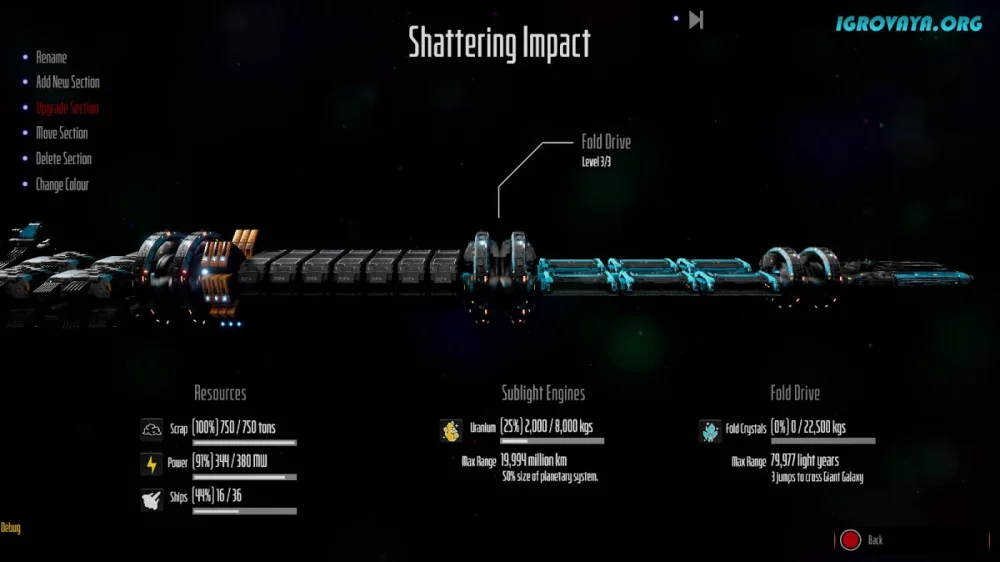 - Развитие и улучшение корабля для разнообразия тактик и стратегий