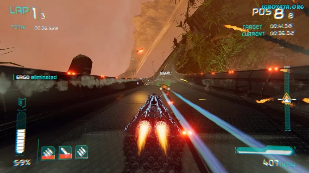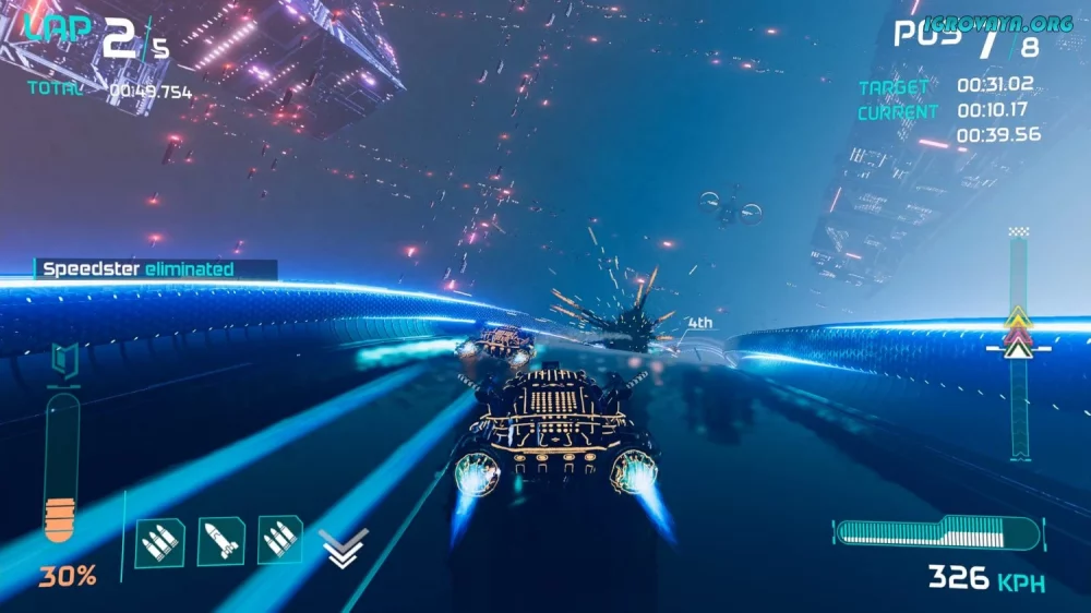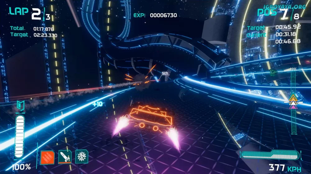 Flashout 3 — захватывающий проект, который перенесет вас в мир ярких и динамичных боевых гонок будущего. Вам предстоит испытать себя в роли водителя сверхскоростного космического корабля и покорить безжалостные арены. Занимайте лидерство в заездах, уничтожайте соперников любыми способами и завоюйте славу за пределами вашей планеты.