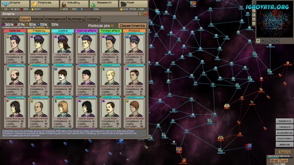 Игра Stellar Monarch представляет собой глобальную стратегию в формате 4Х, где каждому игроку предстоит исследовать бескрайние просторы космоса, завоевывать новые территории и вкладывать ресурсы в развитие высокотехнологического оборудования. Вам предстоит стать настоящим императором и принимать судьбоносные решения, влияющие на судьбу целого космического государства. Вы окажетесь в самом эпицентре событий, где дипломатия и стратегия станут вашими верными спутниками.