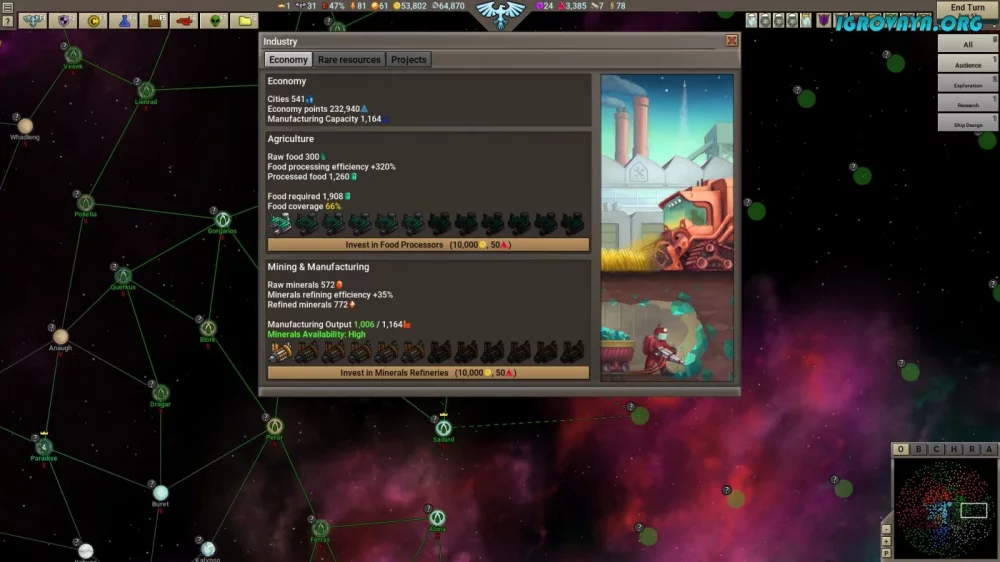 - Геймплей позволяет как опытным игрокам, так и новичкам окунуться в захватывающий мир политики, дипломатии и войны на галактическом уровне.