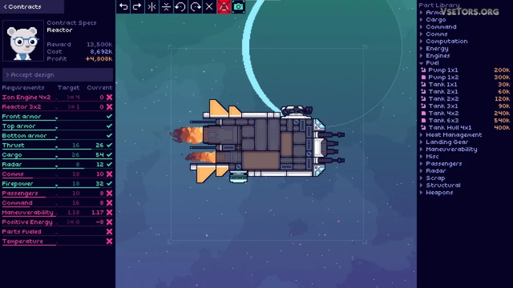 - Увлекательный игровой процесс, основанный на проектировании и строительстве космических кораблей.