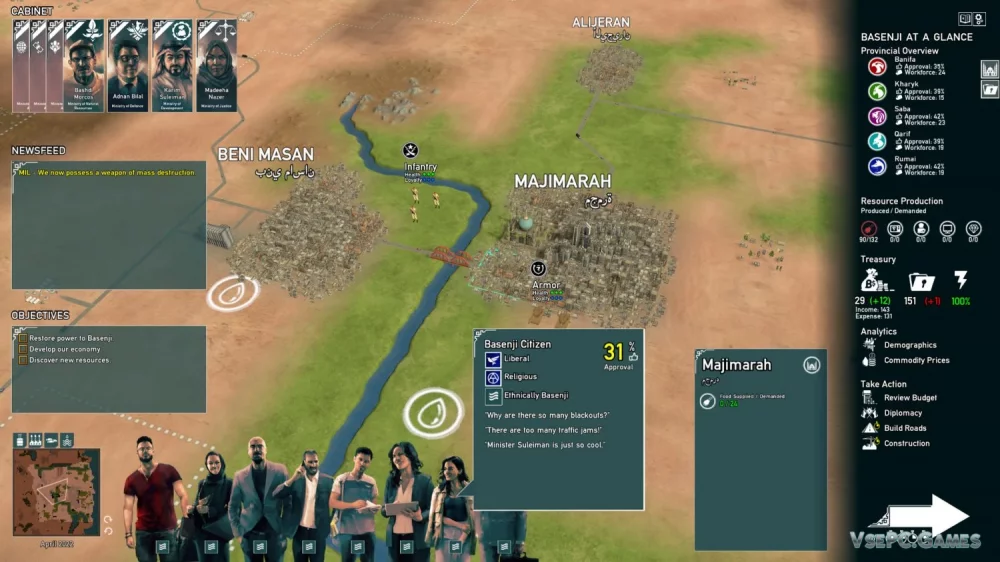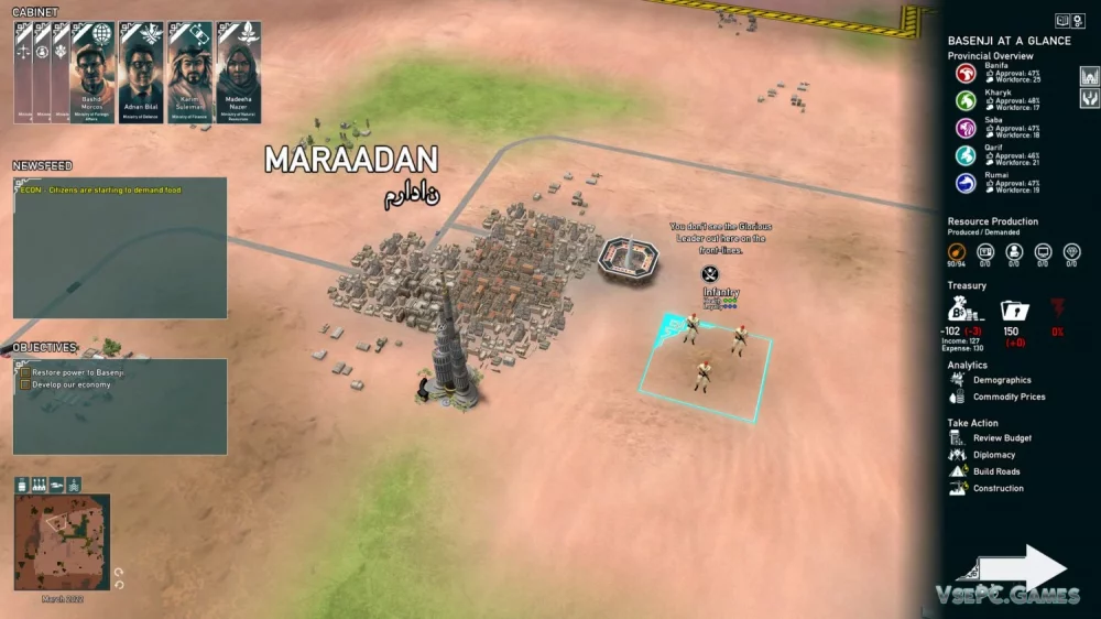 Игровой мир представлен республикой Басенджи, которая возникла в результате демократизации на Ближнем Востоке. Ваша задача - не просто управлять этой республикой, но и строить ее будущее с учетом множества факторов. Вы станете президентом, соберете свой совет министров, и займетесь развитием страны в различных направлениях.