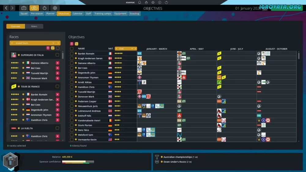 Тренируйте своих велосипедистов, готовьте их к главным соревнованиям и следите за их прогрессом. Важно не только запланировать тренировки, но и создать благоприятную атмосферу в коллективе. Ваши решения и отношения с участниками команды будут влиять на их результаты и участие в гонках. Будьте готовы к неожиданностям и быстро реагировать, чтобы сохранить сбалансированный состав.