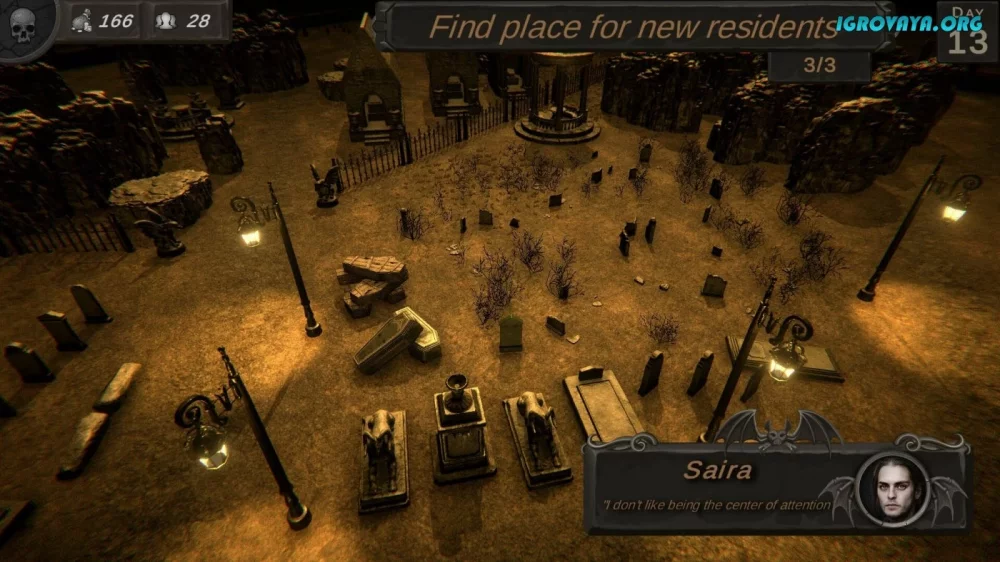 Небольшая инди-студия, создавшая проект, продемонстрировала свою фантазию и талант. Загрузив Graveyard Architect с нашего сайта, вы сможете погрузиться в атмосферу увлекательного геймплея и узнать все подробности о каждом игровом режиме. Первый день в игре предлагает вам украсить участок кладбища, выполнять задания днем и бороться с мертвецами ночью.