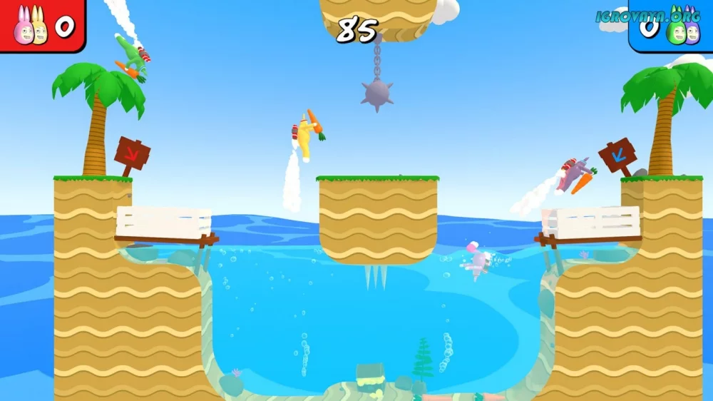 Кроме уровней, в Super Bunny Man доступны различные режимы игры. Например, режим баскетбола, где вам нужно забросить мяч в корзину, или режим сбора морковок, где ваша задача - собрать больше морковок, чем ваш противник.