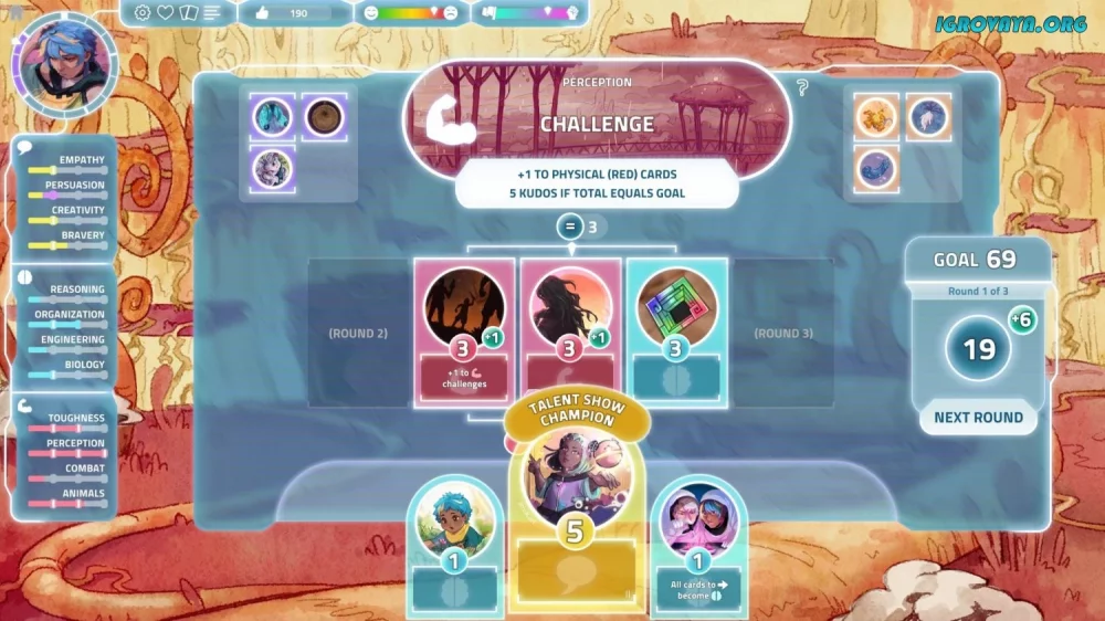 - Уникальный геймплей с элементами визуальной новеллы, диалогами и карточными играми.