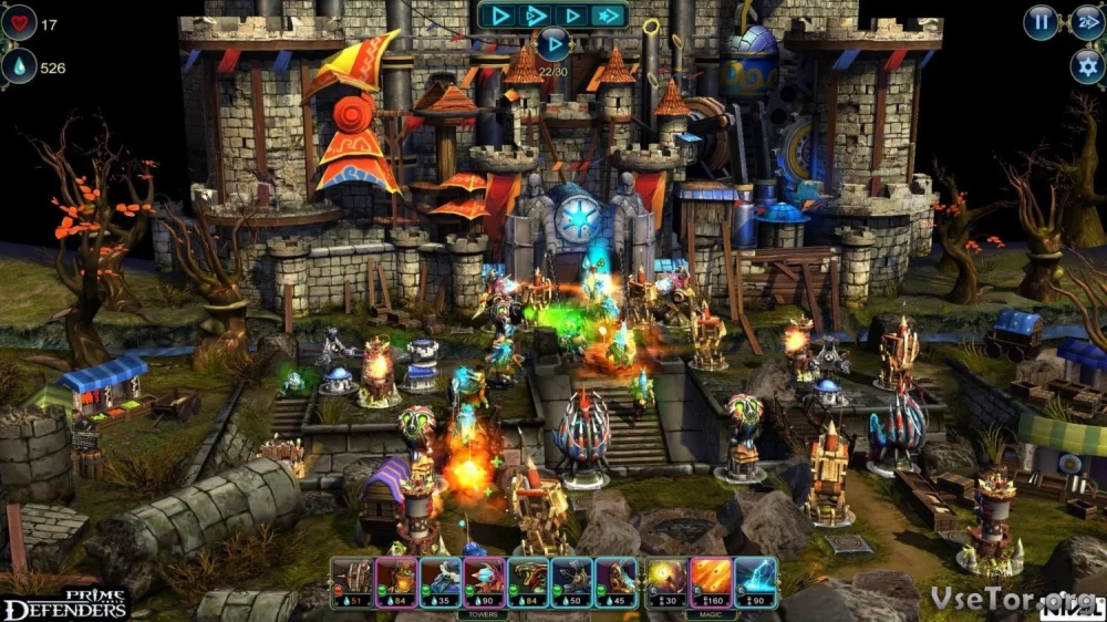 - Разнообразные магические заклинания, таланты и коллекционные карты с башнями для улучшения обороны.