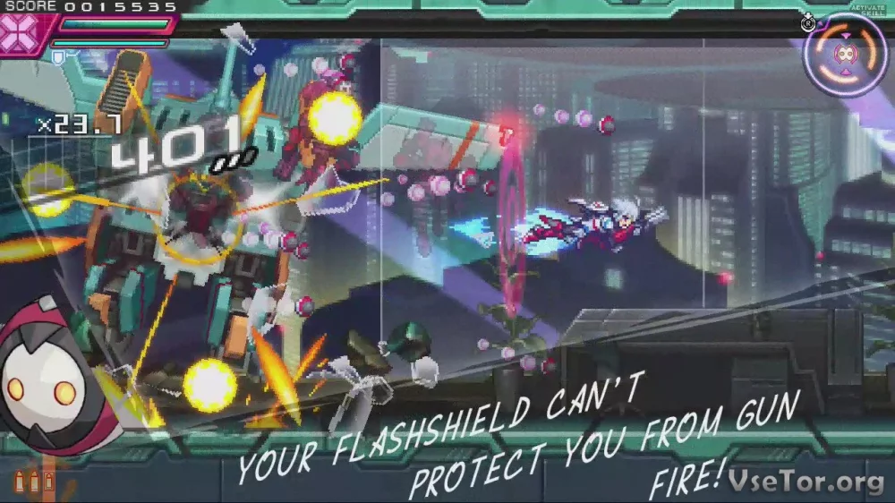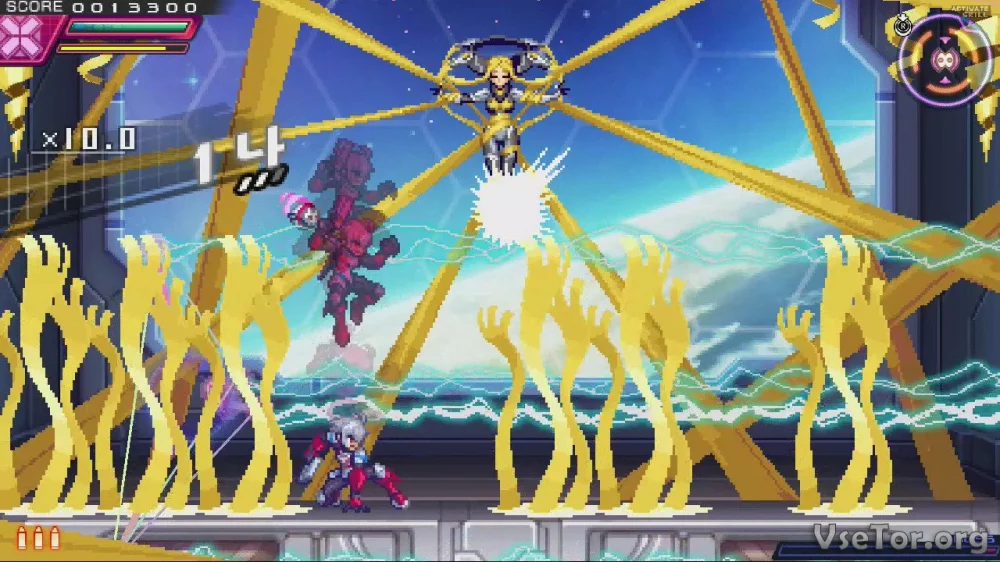 С боссами игрокам придется биться не на шутку. Поведение противников стало более непредсказуемым, требуя от вас стратегического мышления, смекалки и умения комбинировать различные атаки. Разработчики улучшили качество игры, добавив новые текстуры, атмосферную музыку и бонусные миссии, чтобы игроки могли насладиться улучшенным геймплеем и увлекательными приключениями в мире Azure Striker Gunvolt 2.