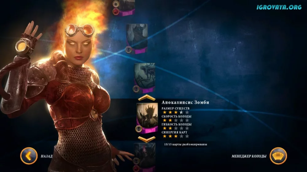 Особенно порадует вас разнообразие режимов игры. Сюжетная кампания поведает вам историю Чандры Налаар и проведет через пять уникальных регионов. Испытания с возможностью игры в кооперативном режиме позволят вам насладиться новыми ощущениями. Сразитесь с случайно выбранным противником или вашим другом, и узнайте, кто лучше владеет искусством карточных дуэлей. Исследуйте потенциал своего персонажа, учитывая как сборку карт, так и его индивидуальные характеристики, которые могут перевернуть ход битвы.