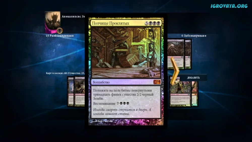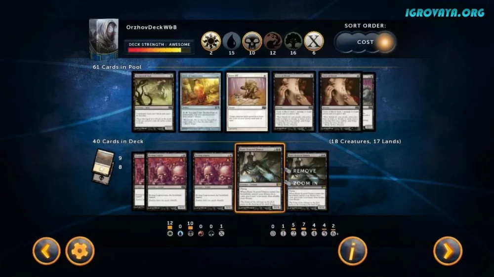Этот проект выдержал испытание временем, продолжая вдохновлять игроков своим многообразием механик и функций. Magic 2014: Duels of the Planeswalkers был создан как спин-офф к настольной игре, и его особенностью стала возможность построения уникальных колод. Столкнитесь с сотнями разнообразных карт, каждая из которых отличается своей уникальной механикой. Творите нестандартные стратегии, выбирая карточки для универсальных сборок или для выполнения конкретных задач, а затем испытайте их в битве.