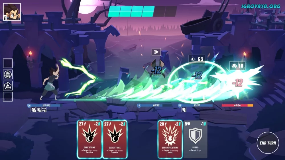 - Разрабатывайте тактику и собирайте мощные колоды карт.