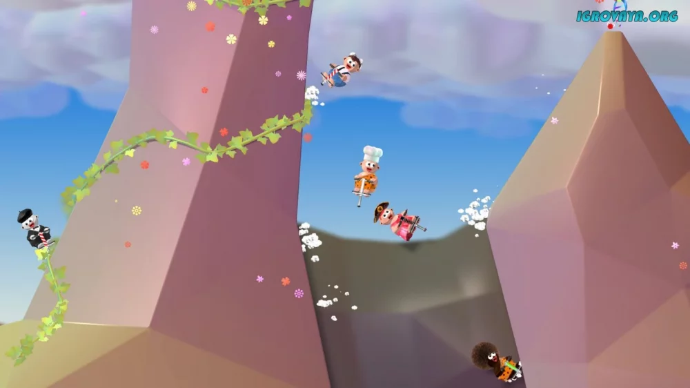 Игра Pogostuck: Rage With Your Friends представляет собой захватывающую аркаду, где вы выступаете в роли младенца, который смог освоить удивительные прыжки на «пого-стике». Ваша задача - соревноваться с другими игроками или ботами, преодолевая препятствия и взбираясь на вершину горы.
