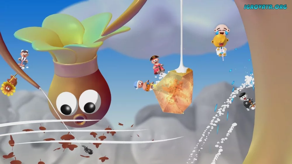 Состязания в игре Pogostuck: Rage With Your Friends наполнены веселой анимацией, детским смехом и яркой атмосферой. Пройденные испытания и собранные каштаны создают незабываемые моменты, наполняя игру радостью и позитивом.