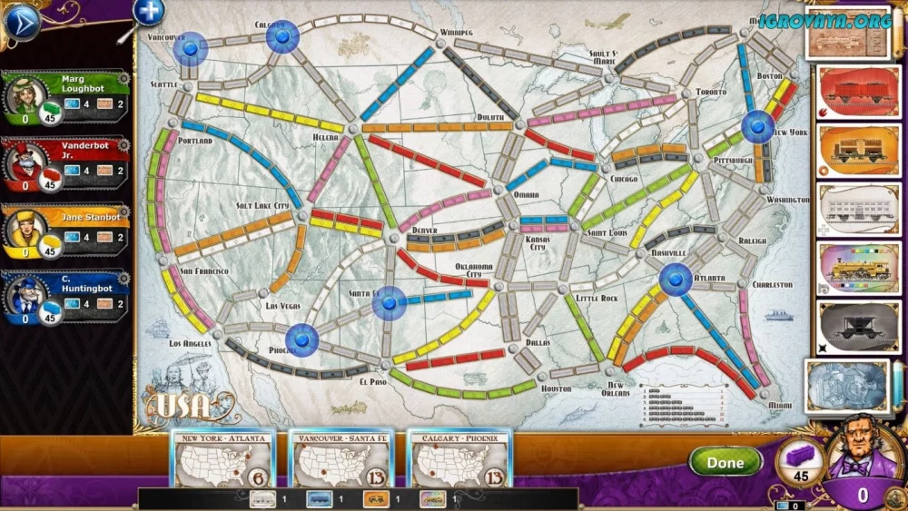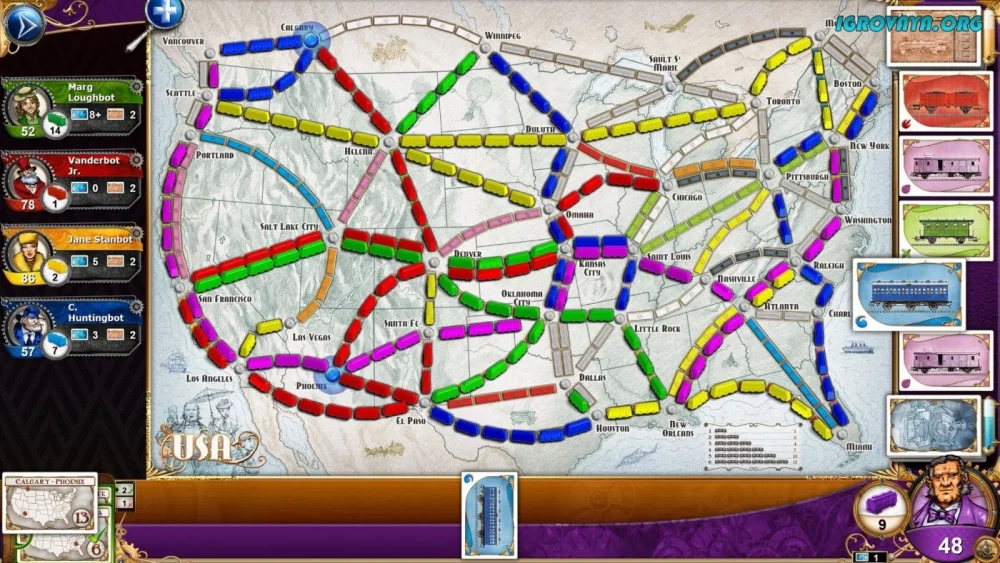Игра Ticket to Ride - это захватывающая компьютерная версия популярной настольной игры. Погрузитесь в атмосферу соревнования, путешествуя по городам Америки и борясь за победу в увлекательном челлендже, который не оставит вас равнодушным.