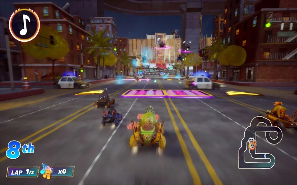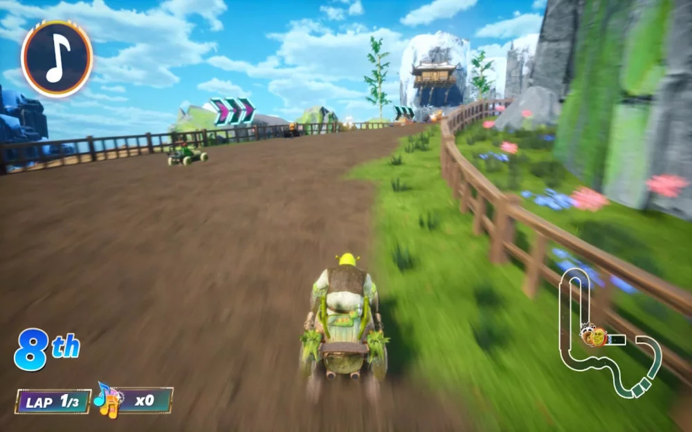 Одной из интересных особенностей игры является разнообразие локаций и трасс. Прокатитесь по трассе в Королевстве Фар-Фар-Авэй из Шрека, где вас ждут живописные пейзажи, домики и даже замок Лорда Фаркуада. Преодолейте препятствия, используйте бонусы и станьте первым на финише!