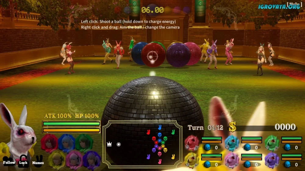 Игровой процесс в Rabbit Burn невероятно прост. Вам нужно запустить огромный бильярдный шар на поле и бегать по нему, выполняя различные задания и наблюдая за удивительными эффектами, когда шары врываются и выбивают противников из игры. Просто наслаждайтесь процессом, находите красоту в каждой детали и стремитесь к заветному клубному трону.