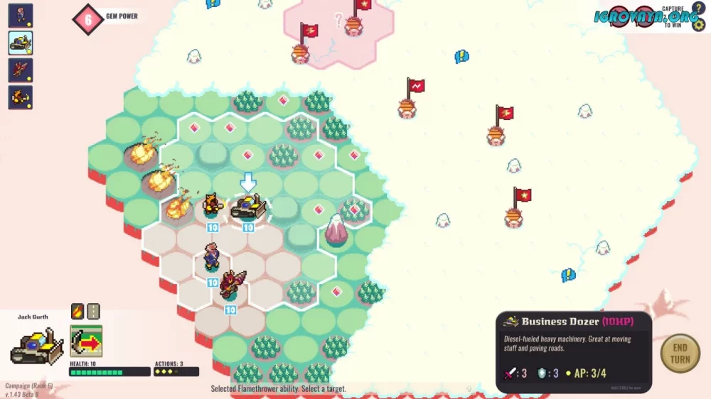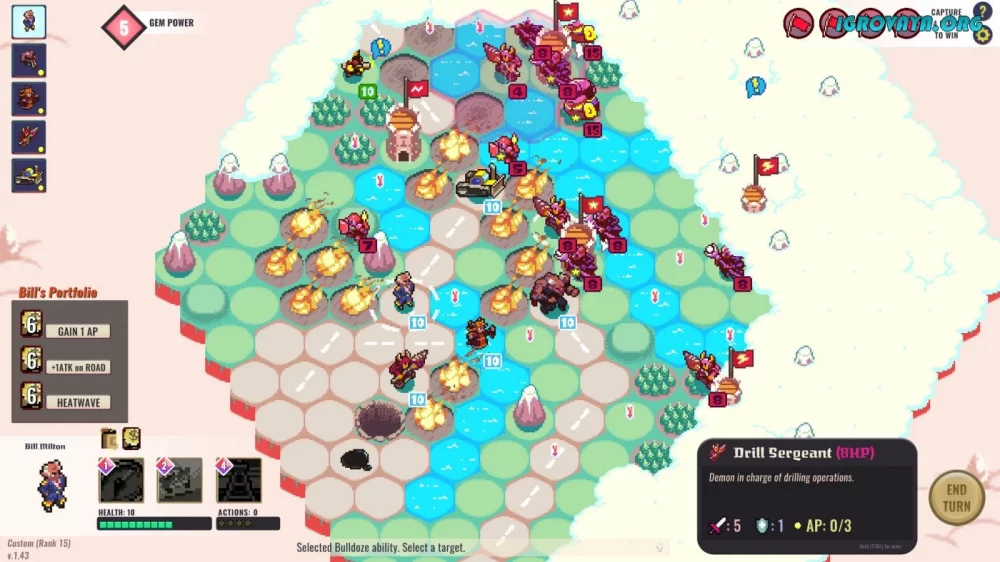 Игра Gem Wizards Tactics представляет собой увлекательный рогалик, в основе которого лежит пошаговая стратегия с потрясающей пиксельной графикой. Демоны Бизнеса вырвались из-под земли, чтобы захватить все ресурсы наземного мира, разрушая леса, строя фабрики и прогоняя местных жителей. Ваш персонаж, Дерби Покет, сталкивается с темными секретами корпорации OMNIGEM, и ему предстоит не только противостоять своим сородичам, но и раскрывать запутанные интриги.