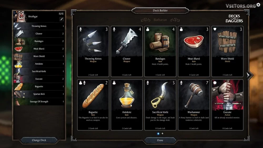 Каждое сражение в Decks and Daggers представляет собой тест на вашу смекалку и умения. Будьте готовы к разнообразным вызовам, стратегически планируйте свои действия и не забывайте о возможности улучшения своего героя. Вас ждут увлекательные сражения, захватывающие приключения и множество сокровищ.