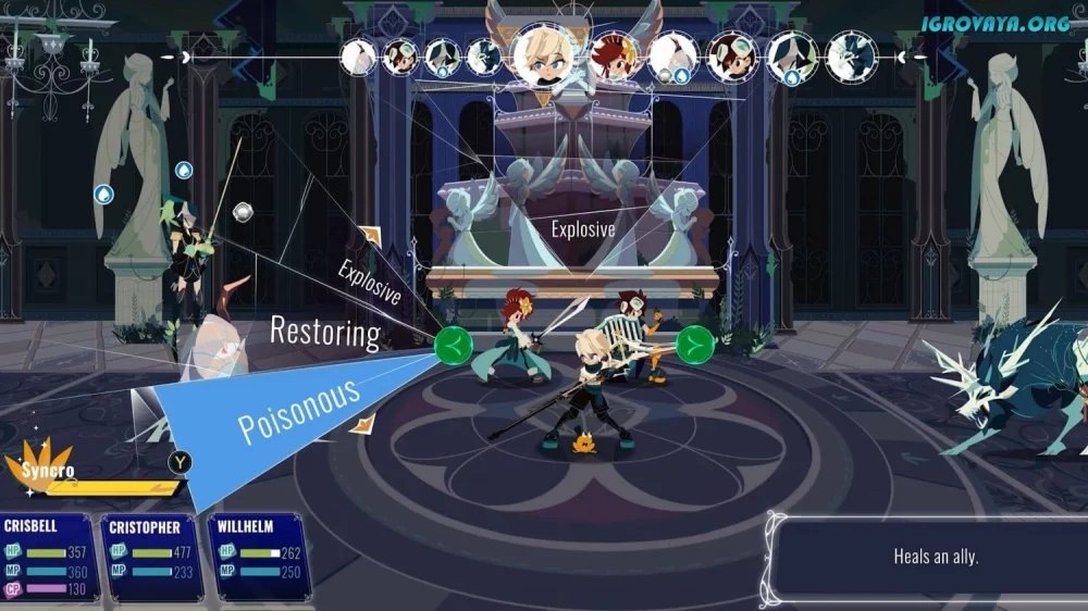 Игровой процесс Cris Tales невероятно увлекателен. Вы отправитесь в путешествие, чтобы остановить императрицу времени и спасти королевство от хаоса. По ходу игры вас ждут схватки с врагами, преодоление преград и различных испытаний.