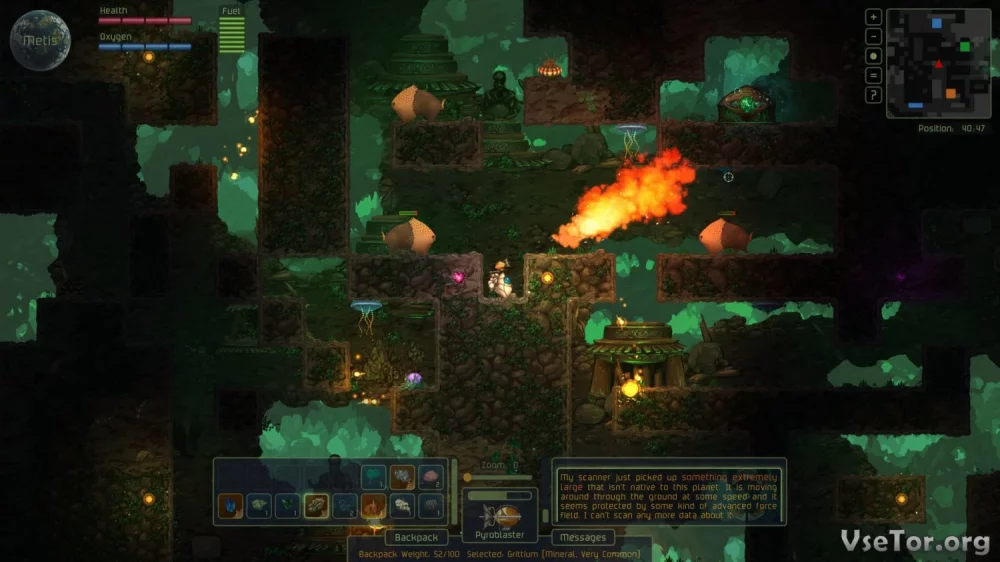Игровой процесс в Something Ate My Alien предельно прост и в то же время увлекателен. Вам предстоит исследовать подземелья, копать тоннели, сражаться с монстрами и искать ресурсы, не забывая выполнять разнообразные задания. Будьте готовы к непредсказуемым событиям и осторожно прокладывайте свой путь сквозь опасные миры планет.