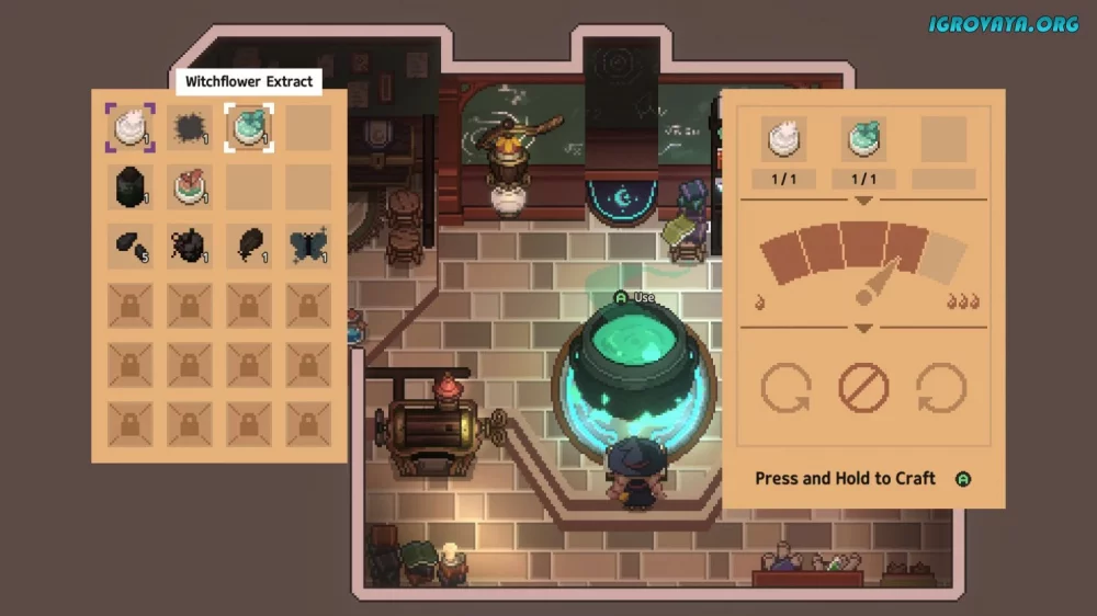 Насладитесь захватывающим сюжетом о повседневной жизни ведьм, где каждый ваш шаг будет иметь значение. Собирайте редкие растения для зелий, варите их в старинном котле, исследуйте мир на своей метле, путешествуя по таинственным локациям. Не забывайте о смене времени суток, ведь свет дня и темнота ночи могут скрывать совершенно разные секреты.