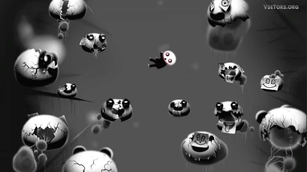 Атмосфера игры Happy Game невероятно проникновенна. Странные существа, мрачные ландшафты и неожиданные повороты событий создают удивительно атмосферу, которая заставит вас держать взгляд на экране.