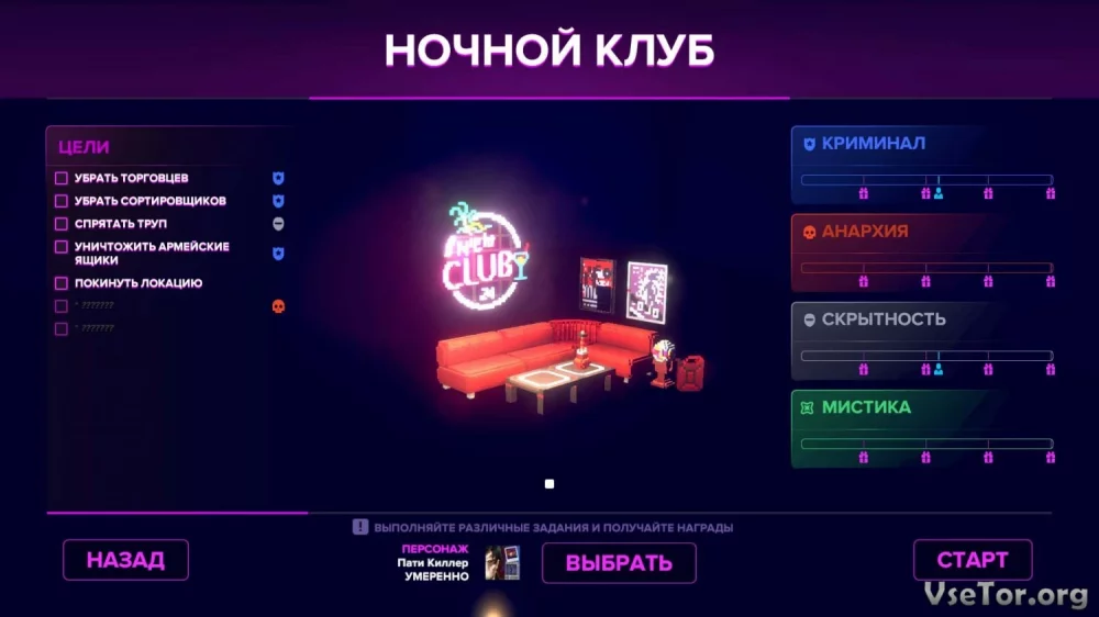 Сеттинг игры постоянно меняется, вам предстоит пройти множество заданий, разогнать множество тусовок и даже играть за разных персонажей с уникальными навыками. Игра разнообразна и захватывающа, каждый уровень дает новые эмоции и вызовы.