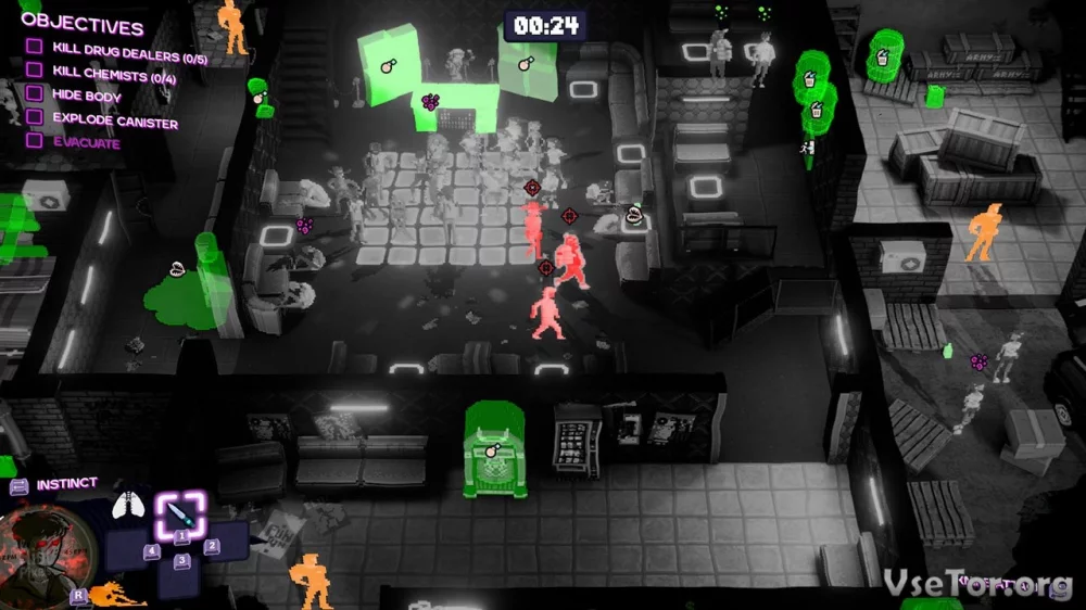 Противники в этой игре не дремлют. Они убегают, звонят в полицию, становятся свидетелями. ИИ не так прост, как может показаться сначала. Будьте осторожны, чтобы не попасться на глаза противникам.